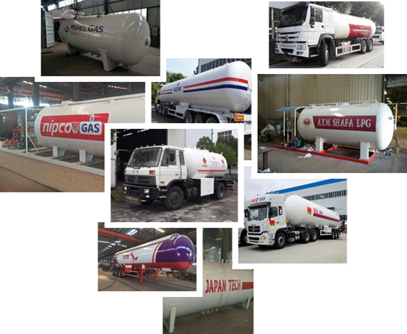 مقطورة صهريج غاز البترول المسال المتنقلة من 30000 لتر إلى 60000 لتر ، والتي يمكن أيضا تثبيت جهاز إعادة تعبئتها.
