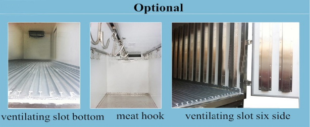 معدات اختياريه | يمكننا جعل شاحنة التبريد وفقا لمتطلبات العملاء مع المعدات الاختيارية أدناه: 1 . تعتبر مواد هيكل البضائع اختيارية وفقًا لأي أنواع البضائع التي تنقلها الشاحنات ، مع الحفاظ على الحرارة بشكل مثالي (مثل: ألواح الصلب الملونة ، ألواح البلاستيك المقوى بالألياف الزجاجية ، الفولاذ المقاوم للصدأ ، الفولاذ المقاوم للصدأ وغيرها) 2. سمك مادة البولي يوريثين لديه 6 سم أو 8 سم لديك الخيار. 3. يمكننا فتح الأبواب الجانبية للشاحنة.يمكن فتح الكمية من الباب الجانبي حسب طلباتك. 4 . وحدة التبريد: العلامة التجارية الشهيرة الدولية ، مثل الولايات المتحدة الأمريكية "الناقل" ، "ثيرمو كينغ" ، كوريا "Hanya" ، وحدات التبريد المصنوعة في الصين وغيرها. 5 . وحدات تبريد مستقلة أو غير مستقلة. 6. يمكن أن تكون درجة حرارة جسم الشحن داخل 0-18 درجة مئوية لسلع مختلفة. 7 . 220V / 380V نظام الكهرباء لمتطلبات مختلفة. 8 . للمتطلبات الخاصة للشاحنات ، مثل نقل اللحوم ، خطاف اللحم ، السكك الحديدية دليل سبائك الألومنيوم وفتحات التهوية الخ. يرجى إعلامنا مقدما إذا كان لديك أي طلبات خاصة لشاحنة الثلاجة ، يمكننا تجهيز مختلف أنواع المعدات الاختيارية بالنسبة لك. | ||