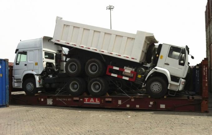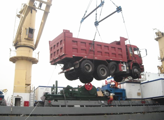 يمكن نقل شاحنة قلابة عن طريق سفينة البضائع السائبة ، ووضع الشاحنات على سطح السفينة: