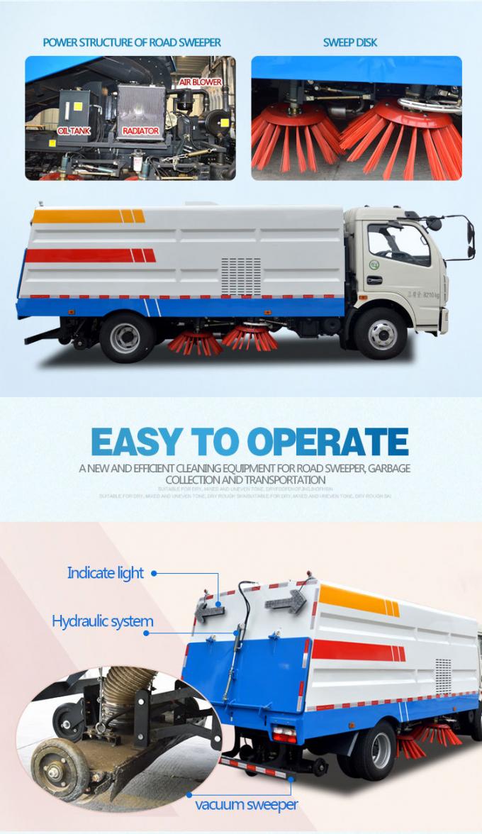 1. شاحنة كنس الشوارع هي مناسبة لتنظيف الطرق الحضرية ، الطرق السريعة ، الساحات ، المطارات ، الاحواض ، التنظيف الميكانيكي ، التنظيف ، الرش وقمع الغبار.