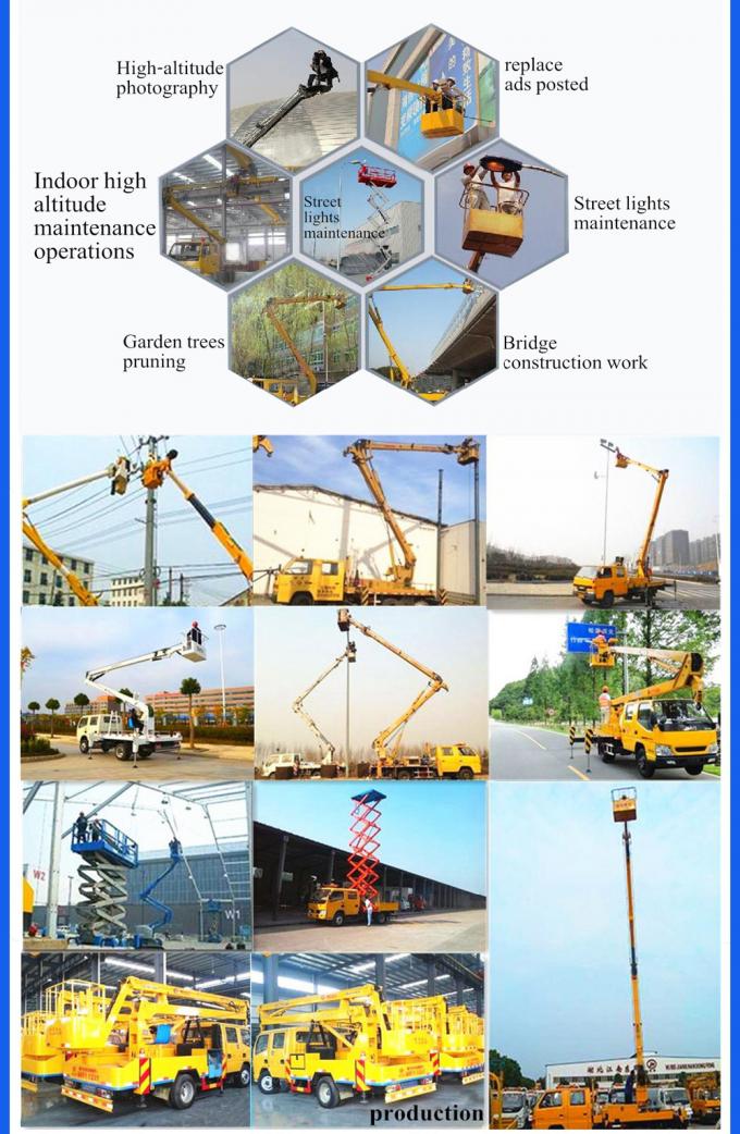 | Tujuan | Truk operasi ketinggian tinggi secara posis digunakan untuk pemeliharaan, instalasi, pembersihan, fotografi, pembuatan kapal, industri kimia, tenaga listrik, pemangkasan, penggantian lampu jalan, perbaikan teknik pekerjaan rumah dan operasi ketinggian tinggi lainnya. Sangat cocok untuk jalan sempit dan gang jalan pekerjaan, administrasi kota, taman, transportasi. | ||