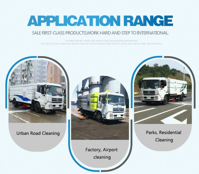 1. The Road Sweeper Truck cocok untuk pembersihan jalan perkotaan, jalan raya, plaza, bandara, dermaga, pembersihan mekanis, pembersihan, penyemprotan dan penindasan debu.