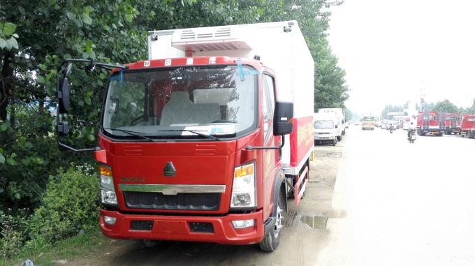 HOWO 4x2 Didinginkan Box Truck Fiberglass Batin, 3 Ton Kulkas Freezer Truck